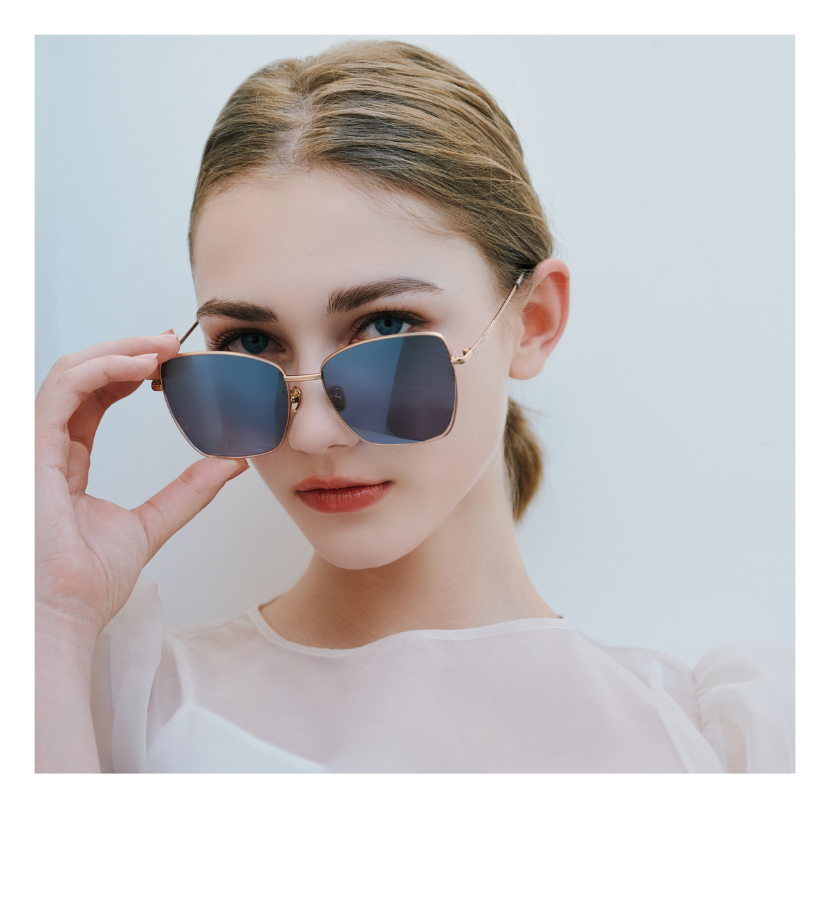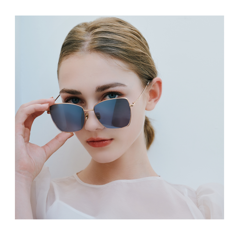 In sleek lines, metal sunglasses Beatrice accentuates an elegant butterfly eye with a subtle double-bridge nose and graceful brow curving into a forced hinge and slender hollow butterfly temple, creating a gentle and confident image for you.